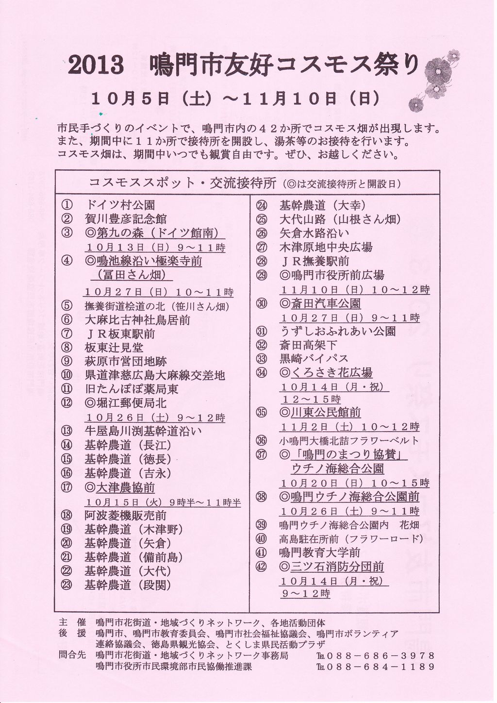- 2013年 鳴門市友好コスモス祭りのお知らせ。