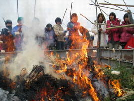 焼いて食べると風邪をひかないとか、火に当たると無病息災で長生きするといわれ、「どんど焼き」等という地域もあります。